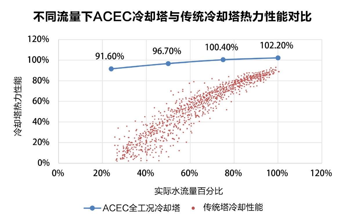 艾客“全工况”自平衡全膜化冷却塔组采用创新的自平衡布水系统,彻底解决了冷却塔进出水失衡的难题。保障各种工况冷却系统效率,实现小逼近度性能指标:
