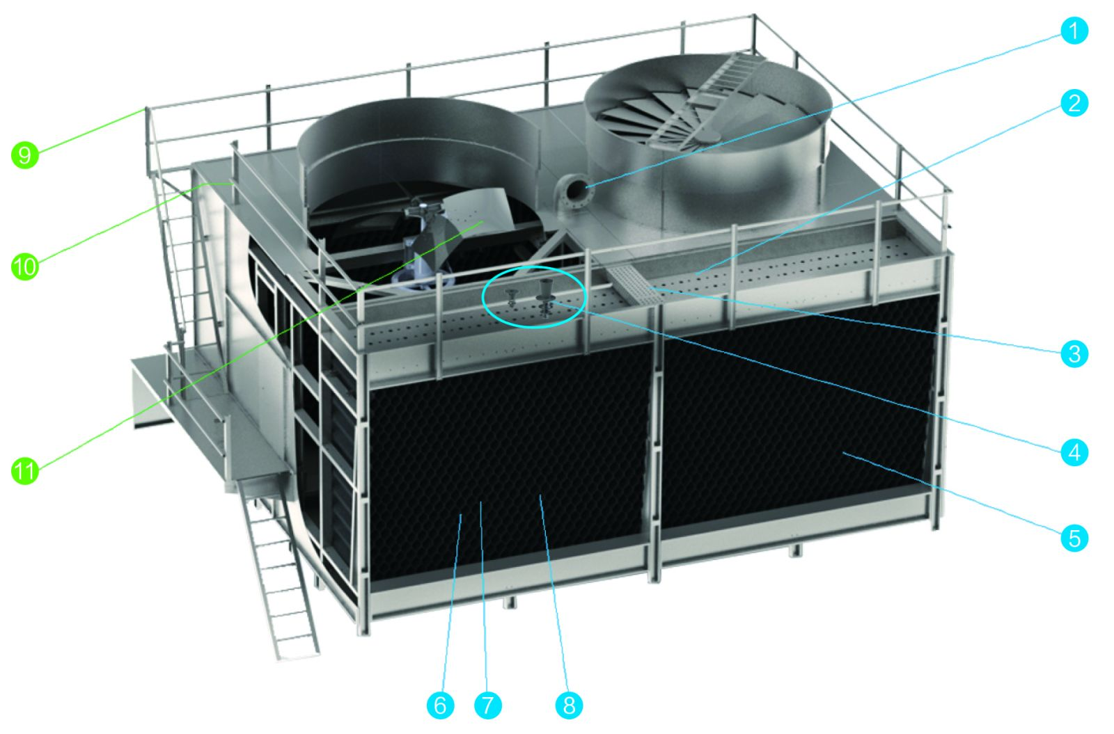 艾客“全工况”自平衡全膜化冷却塔组采用创新的自平衡布水系统,彻底解决了冷却塔进出水失衡的难题,大幅提高了冷却系统效率: